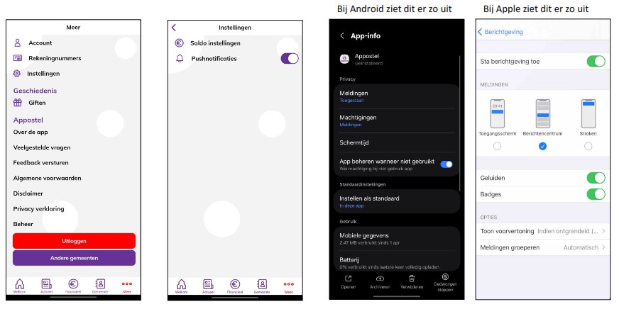 3) Controleer ook direct of in de app instellingen van je toestel de Appostel app de machtiging heeft om notificaties te sturen.